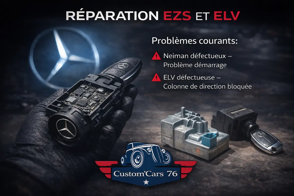 Chez Custom'Cars 76, nous sommes votre spécialiste électronique pour la réparation EZS ELV Mercedes en Normandie. Situés en Normandie, nous intervenons également à Yvetot, Neufchâtel-en-Bray , Dieppe , Rouen , Petit Caux , Yerville , Le Havre , Normandie et dans les environs. Notre objectif est de vous offrir une intervention express et un diagnostic rapide pour résoudre vos problèmes d'anti-pollution et de neiman bloqué.