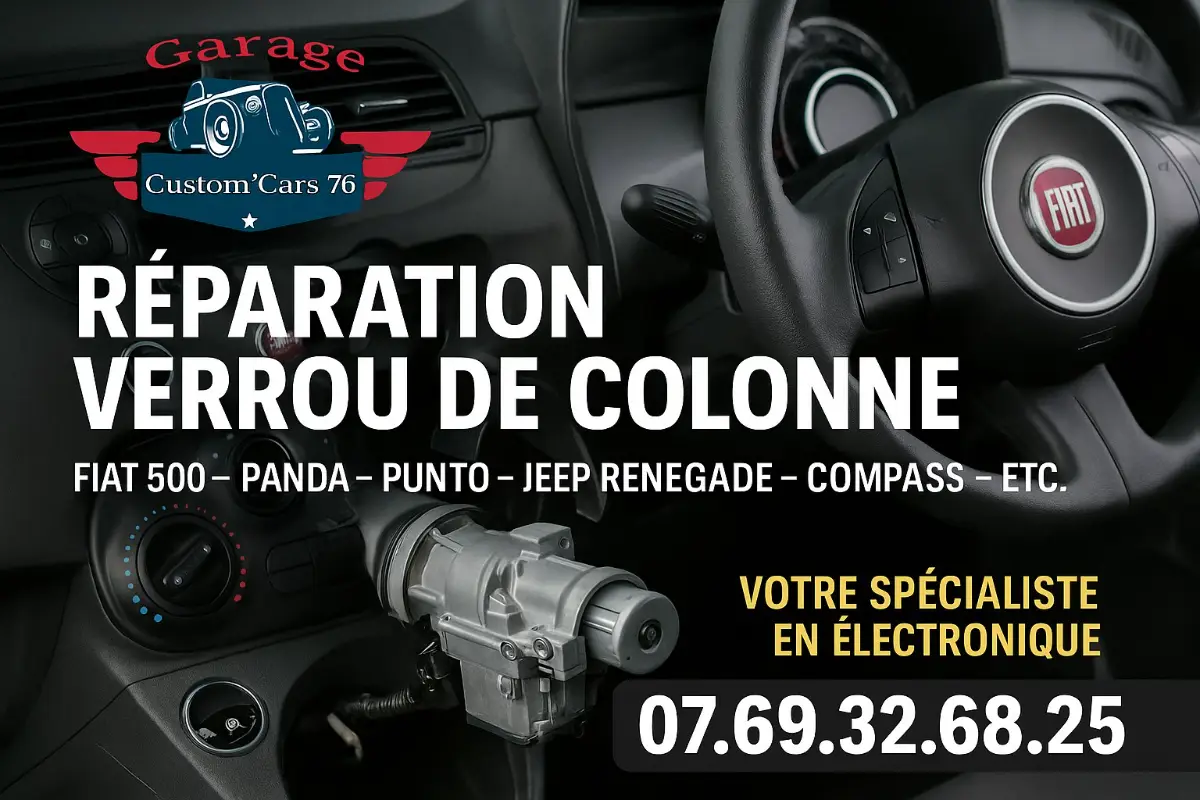 Vous recherchez un service de réparation des verrous de colonnes pour votre Fiat 500, Fiat Panda, Fiat Punto, Jeep Renegade, ou Jeep Compass? Chez Custom'Cars 76, nous sommes votre partenaire de confiance. Notre expertise en électronique automobile garantit la sécurité et le bon fonctionnement de votre véhicule.